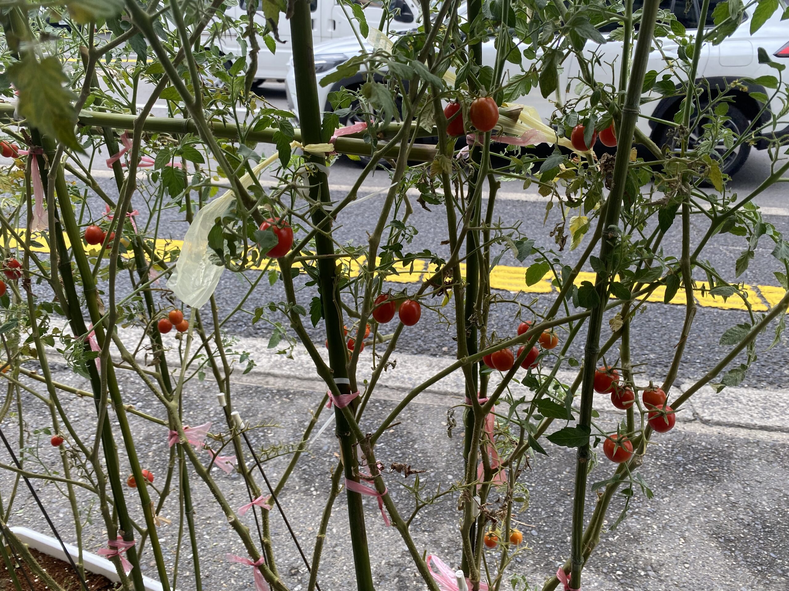 毎日確実に大きくなるトマトちゃんは、ついに160センチ以上となりまして支柱に限界値を突破しております。😂