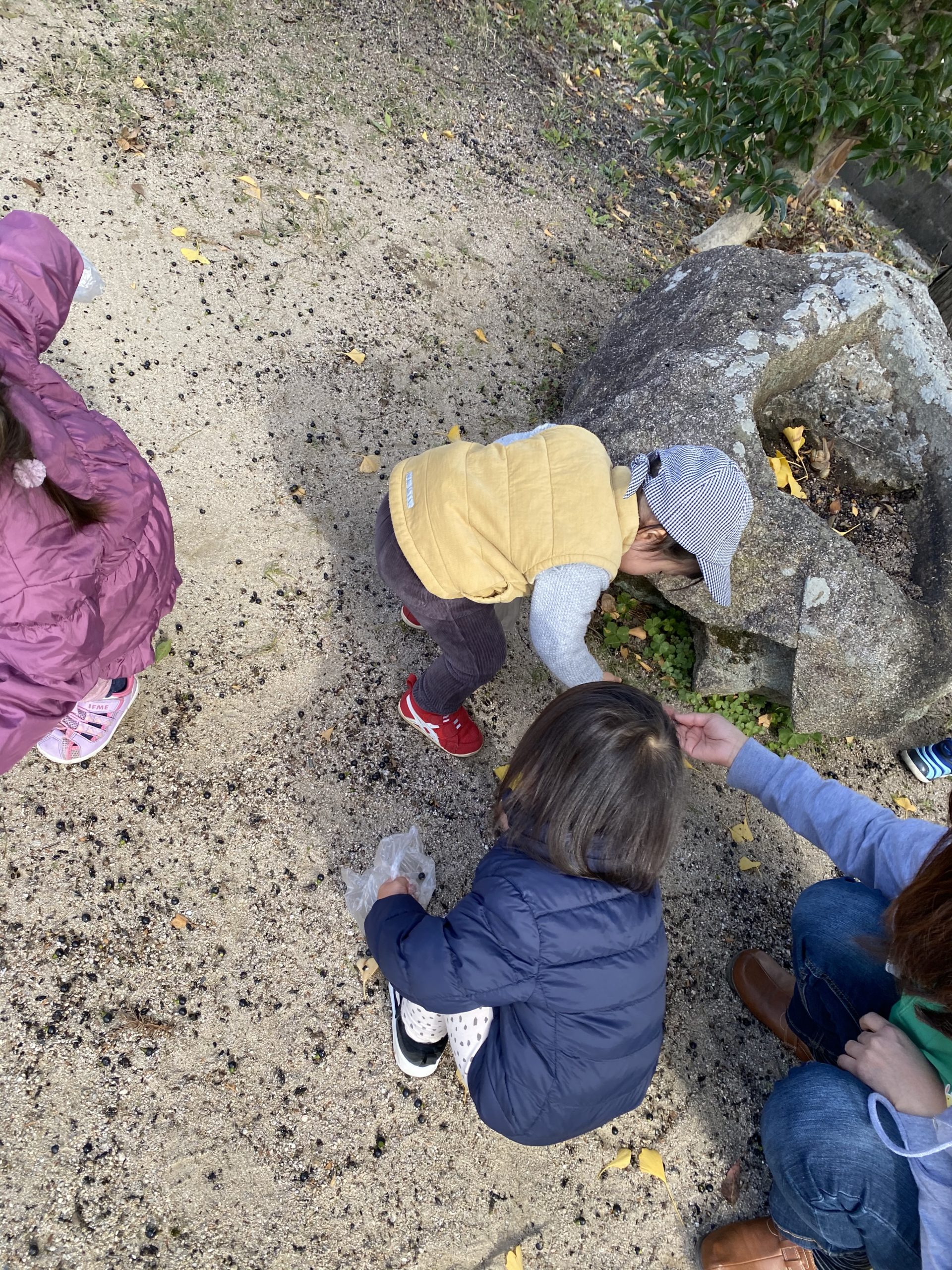 子どもたちは公園でドングリや、木の実、落ち葉などを拾ってママやパパへのお土産にしてます。