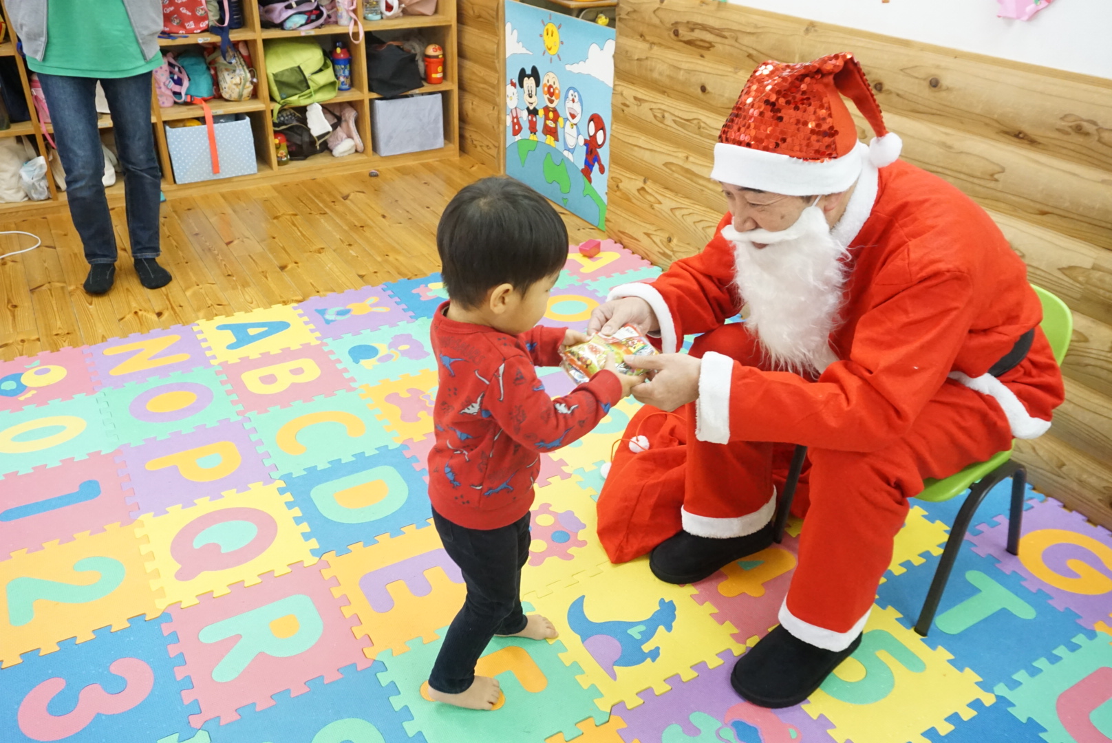 サンタがやってくると、びっくりして泣いてしまう子もいましたが、プレゼントをもらうとしっかりと持って嬉しそうにしていました。