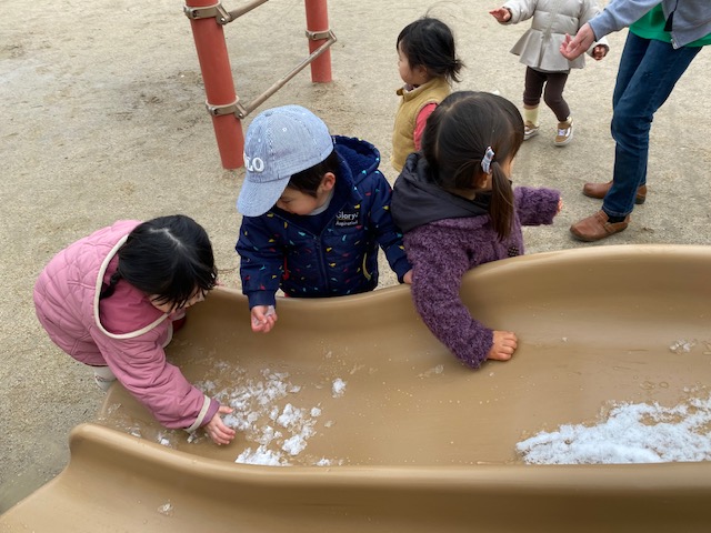 雪の日でも嬉しそうに雪を手でもって元気にお遊んでいます!☃❄