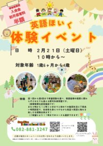 園内や施設の様子を見てもらう他、英語のレッスン体験、また園内の説明や質問も答させていただきます。
